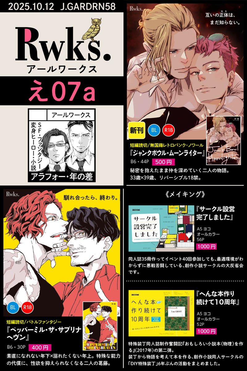 牧師のジンは、人を捜している男マオと出会い、互いの正体を知らずに仲を深めていく。33歳×39歳、体格差リバ、R18。